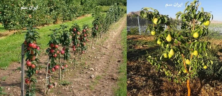 • در باغ‌های مدرن سیب در استان آذربایجان، نهال‌های پیوندی از **سال سوم** بار می‌دهند.