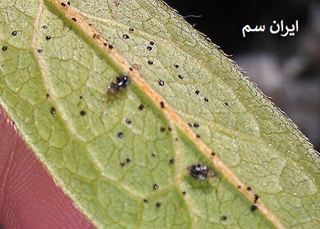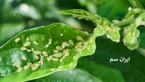 نشانه‌ها: برگ‌ها می‌پیچند و چسبناک می‌شوند.